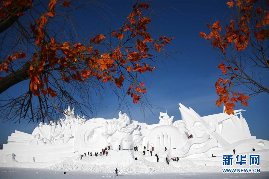 國內(nèi)最大的雪雕盛會(huì)太陽島雪博會(huì)正在緊鑼密鼓建設(shè)中,雪雕師正在精雕細(xì)刻打磨中。