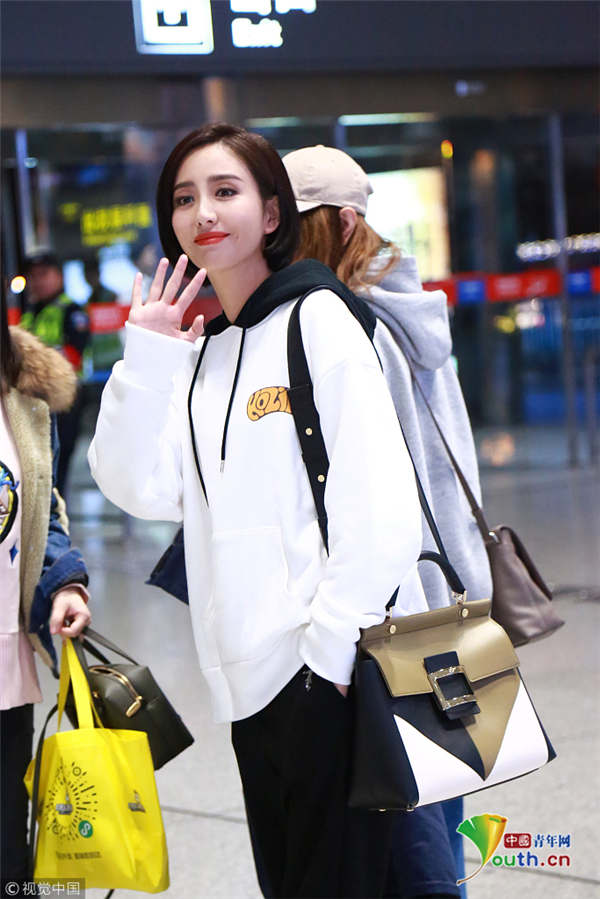 10月18日,湖南長沙, 佟麗婭錄完《快樂大本營 》現(xiàn)身長沙機(jī)場,她梳利落短發(fā)穿連帽衛(wèi)衣,笑容甜美氣質(zhì)佳。