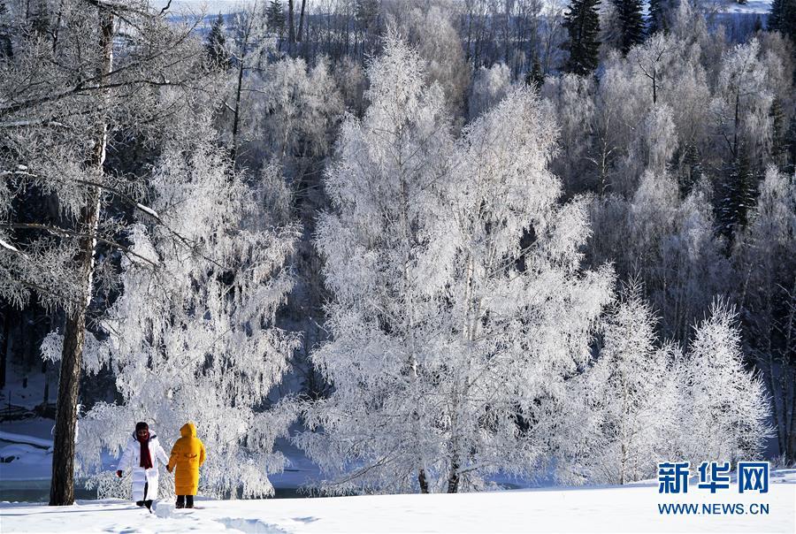 12月12日,游人在吉林省吉林市豐滿區(qū)吉豐東路松花江畔觀賞霧凇美景。