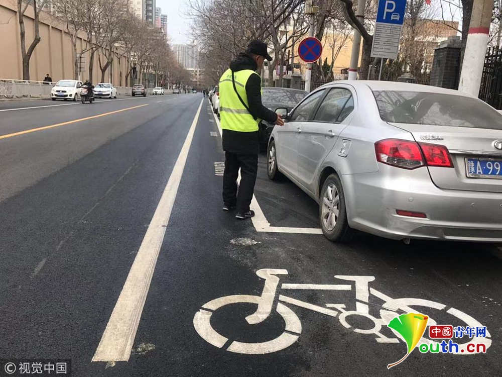 “你看看,自行車道被新劃的停車位占住了,路邊沒(méi)有停車還好,一旦有汽車,我騎車只能走快車道,基本沒(méi)有騎車的位置了?!笔忻駨埾壬f(shuō),“這里最多能容下一輛電動(dòng)車通行,不走機(jī)動(dòng)車道你說(shuō)走哪?”