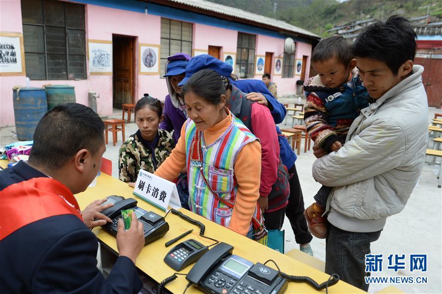獨龍族群眾在辦理金融業(yè)務(2015年3月25日攝)。 新華社記者 胡超 攝