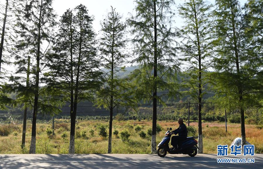 舒港發(fā)騎著電動車去查看自家種植的西洋參(10月27日攝)。