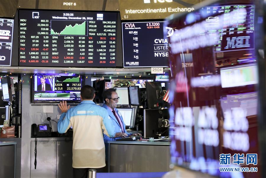 12月26日,美國紐約證券交易所的電子屏顯示當(dāng)天交易信息。新華社記者 王迎 攝
