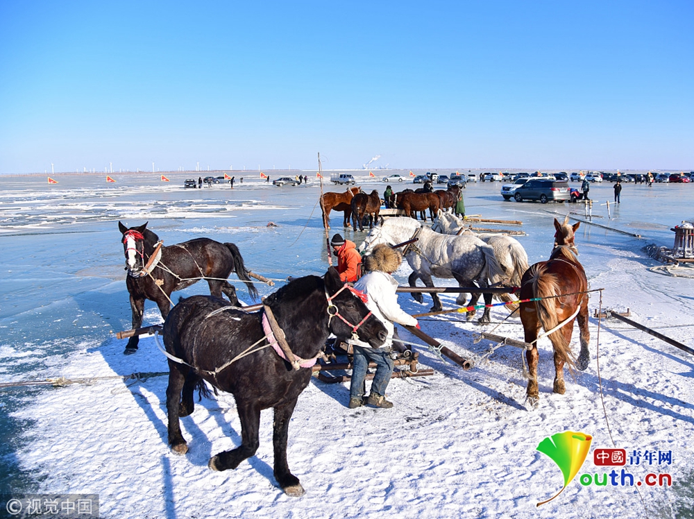 2018年12月26日,吉林松原,查干湖迎來了“紅網(wǎng)”,單網(wǎng)捕撈約30萬斤。