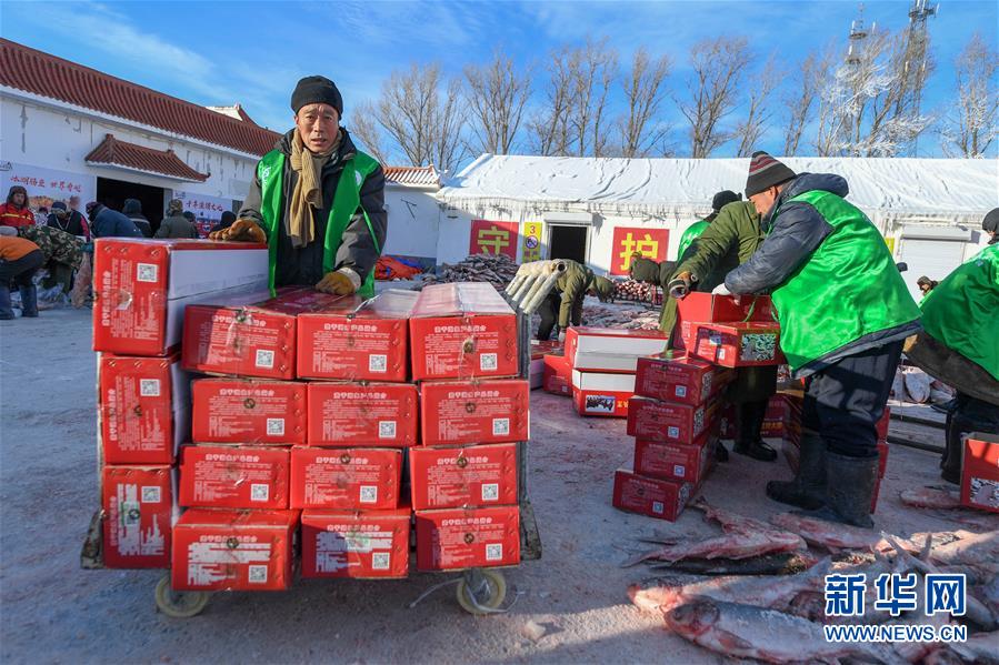 12月27日,在吉林松原查干湖漁場(chǎng),工人們將魚裝箱。 隨著吉林松原查干湖冬捕知名度不斷提高,全國各地消費(fèi)者對(duì)查干湖魚的需求量逐年增大。2014年開始,多個(gè)電商平臺(tái)和快遞企業(yè)紛紛抓住商機(jī)進(jìn)駐查干湖。經(jīng)過多年發(fā)展,借助互聯(lián)網(wǎng)銷售優(yōu)勢(shì)和日趨完善的快遞網(wǎng)絡(luò),全國多地的百姓可以在魚出水后的48小時(shí)內(nèi)品嘗到查干湖魚的鮮美滋味。 新華社記者張楠攝