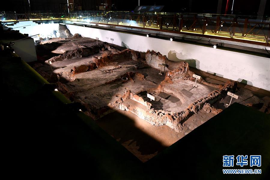 這是河南鄭州大河村遺址博物館內(nèi)的仰韶文化房基(12月11日攝)。