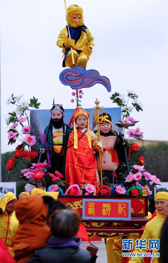 1月1日在展演活動上拍攝的“抬閣”表演。2019年元旦,浙江省桐鄉(xiāng)市濮院鎮(zhèn)舉辦新年“非遺文化藝術節(jié)”活動,濮院鎮(zhèn)下屬多個鄉(xiāng)村的傳統(tǒng)美食制作、手工藝品、非遺文化表演等鄉(xiāng)村特色非遺項目在濮院鎮(zhèn)中心廣場進行集中展示展演。新華社記者 徐昱 攝