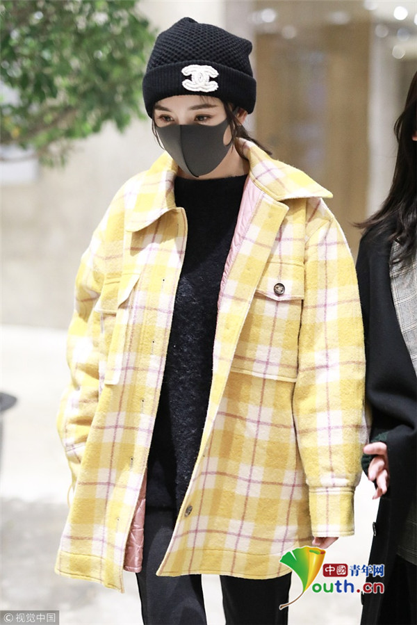 2018年1月6日,上海,楊冪現(xiàn)身某酒店。她戴著帽子口罩,身穿黑色套裝,而外面搭配的奶黃格子外套卻瞬間減齡,明亮又惹眼,無懼寒冬露著纖細(xì)腳踝,依舊是那個(gè)很會(huì)穿搭的大冪冪。
