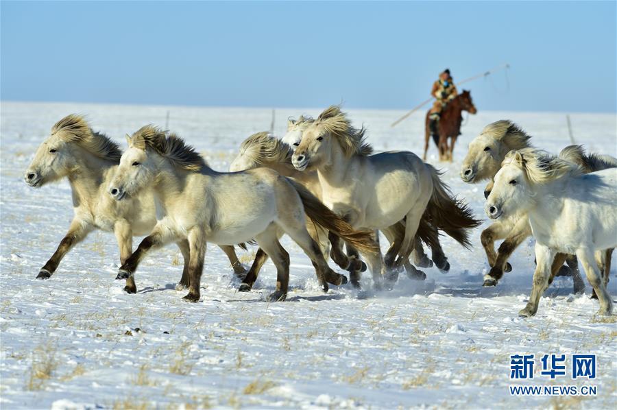 1月8日,牧民進(jìn)行套馬表演。 時(shí)下正值草原冬季旅游旺季,內(nèi)蒙古自治區(qū)西烏珠穆沁旗的牧民們?cè)谘┰弦徽股硎?,為游客展現(xiàn)獨(dú)特的民族風(fēng)情。 新華社記者 鄒予 攝