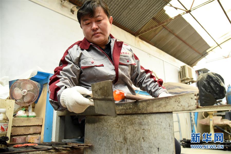 1月12日,孫云毅在制作雞油黃琉璃藝術(shù)品。  新華社記者王凱攝