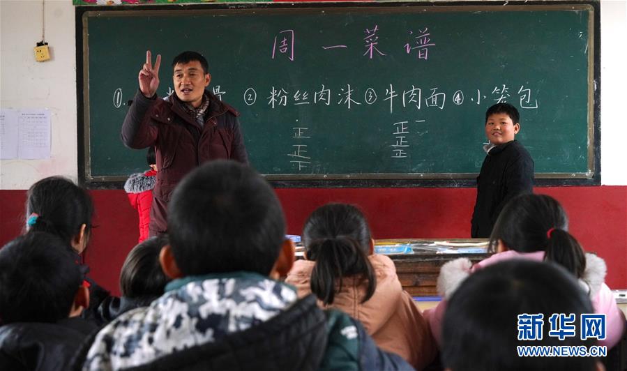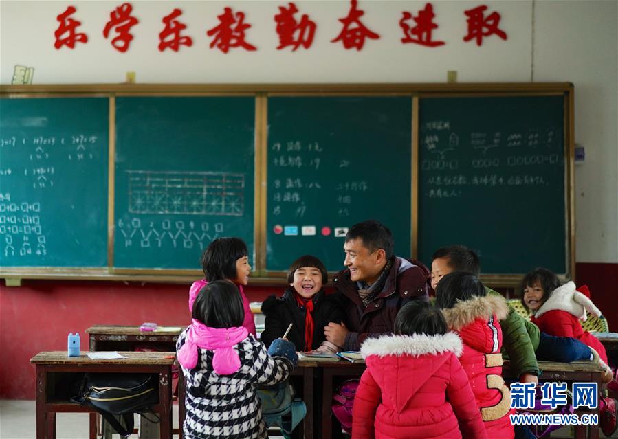 1月3日,章站亮利用課間時間給學(xué)生們講故事。由于黃泥村地處偏遠(yuǎn),學(xué)生的父母長期不在家,章站亮的故事幾乎成為了學(xué)生了解外界社會的重要方式。 新華社記者 胡晨歡 攝