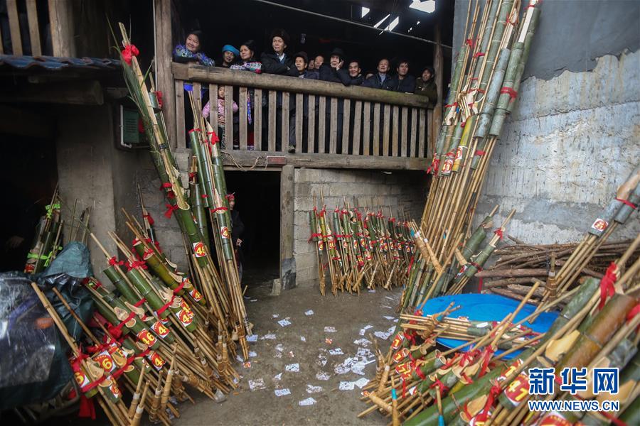 1月14日,人們在廣西融水苗族自治縣紅水鄉(xiāng)舉行的蘆笙節(jié)上賽蘆笙。新華社記者 陳君清 攝