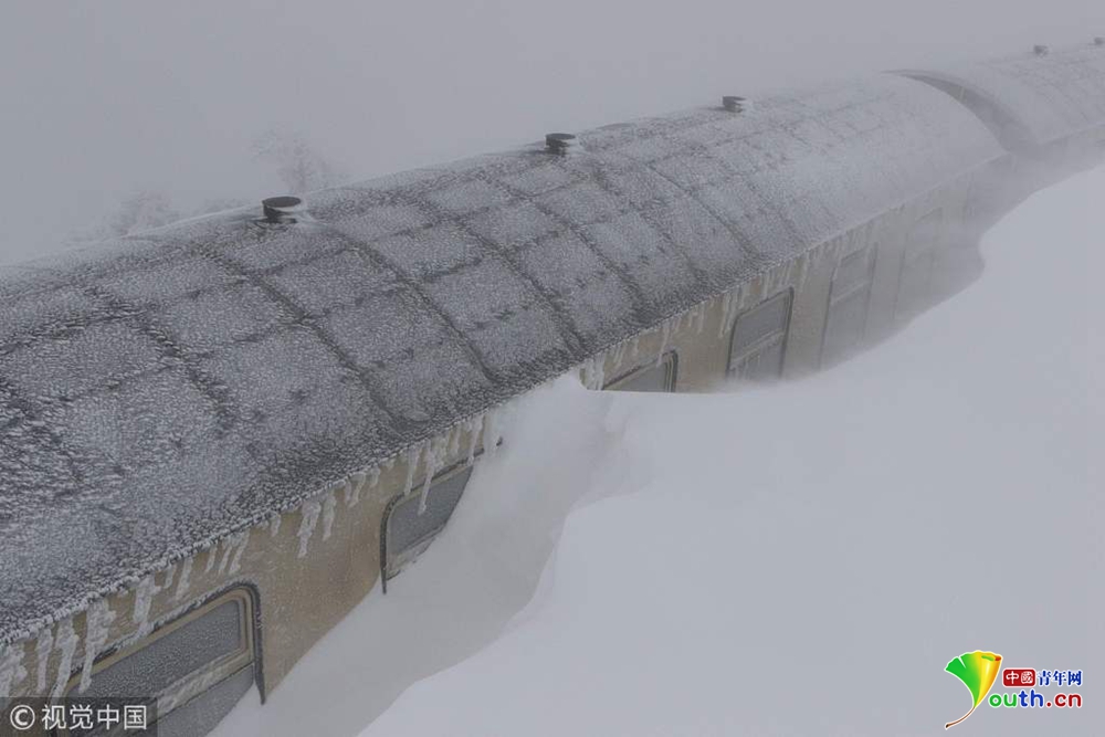 奧地利暴風雪持續(xù) 公交車站被積雪掩埋