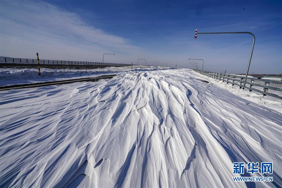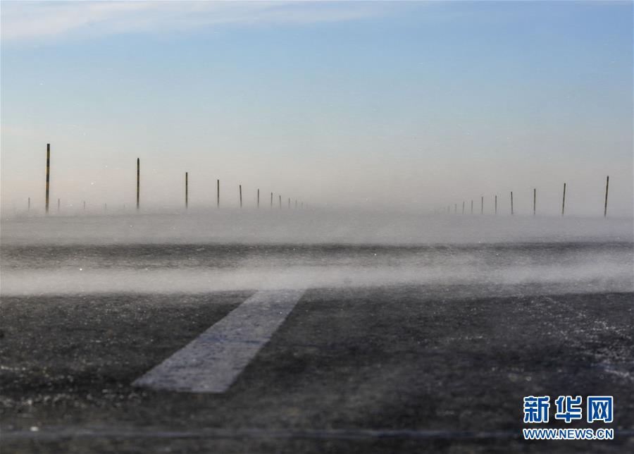 在新疆瑪依塔斯風區(qū)內,公路上大風卷起細雪飄散開來(1月13日攝)。 瑪依塔斯風區(qū)位于新疆西北部額敏縣境內。這里東西風交替頻繁,一年大風天數(shù)超過150天,是世界上罕見的暴風雪災害地段。駐守在這里的新疆塔城公路管理局額敏分局瑪依塔斯應急保障基地,近年來連續(xù)裝備拋雪機等冰雪搶險救災裝備,有力地保障了這條道路的交通安全。 新華社記者趙戈攝