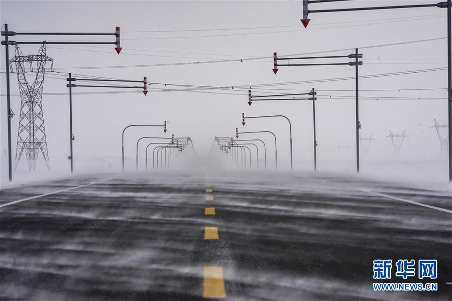 這是新疆瑪依塔斯風區(qū)內出現(xiàn)的“白毛風”現(xiàn)象(1月15日攝)。 瑪依塔斯風區(qū)位于新疆西北部額敏縣境內。這里東西風交替頻繁,一年大風天數(shù)超過150天,是世界上罕見的暴風雪災害地段。駐守在這里的新疆塔城公路管理局額敏分局瑪依塔斯應急保障基地,近年來連續(xù)裝備拋雪機等冰雪搶險救災裝備,有力地保障了這條道路的交通安全。 新華社記者趙戈攝