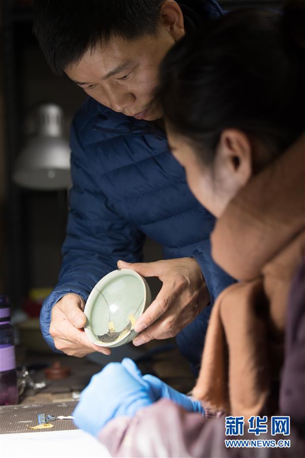1月15日,在龍泉市牛頭嶺村“七分醉”工作室,吳榮強(左)指導一名徒弟進行漆繕。 新華社記者翁忻旸攝