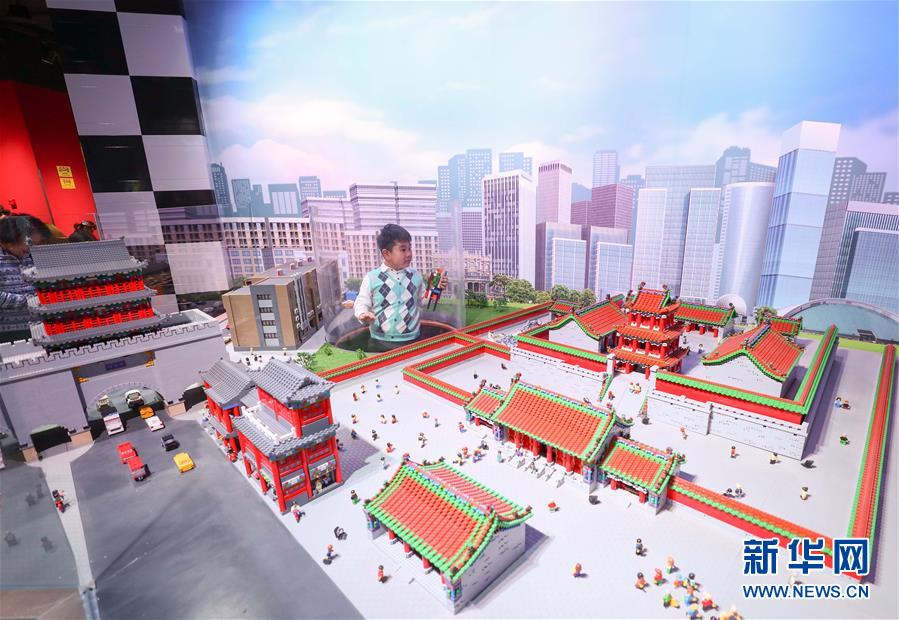 1月15日,小朋友在觀賞由“樂高”積木搭建而成的“沈陽故宮”。