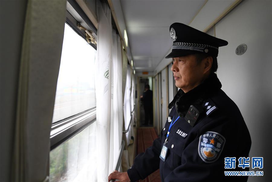 1月1日,在越南河內(嘉林)開往中國南寧的列車上,乘警楊鐵鳴注視著車外。 新華社記者陸波岸攝