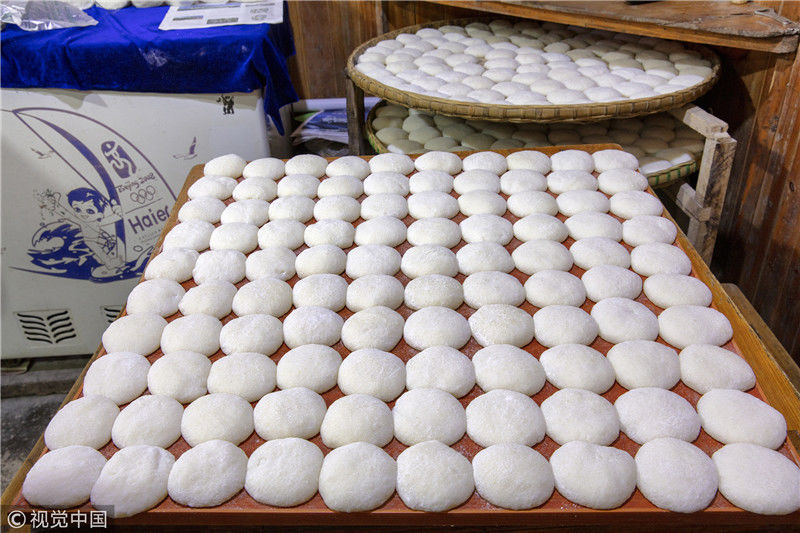 2019年1月26日,重慶中山古鎮(zhèn),880桌“千米長(zhǎng)宴”5萬(wàn)人共品年味。街坊們?cè)陬^天就開(kāi)始準(zhǔn)備各種菜肴與小吃。
