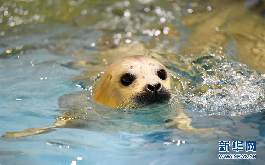 哈爾濱極地館:海豹寶寶水中“秀萌”