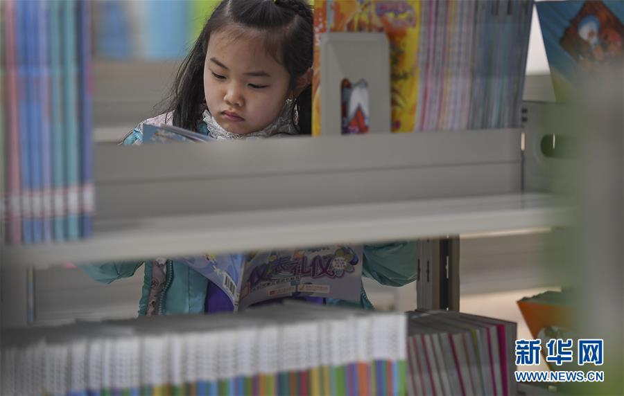 2月24日,6歲的小讀者劉小飛在府谷縣圖書館少兒閱覽區(qū)翻閱圖書。 新華社記者 陶明 攝