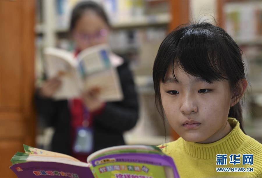 2月24日,中學生李婭旋(右)在府谷縣圖書館閱讀。 新華社記者 陶明 攝