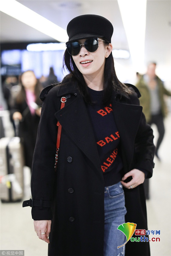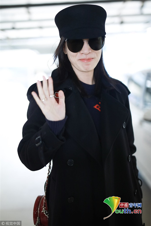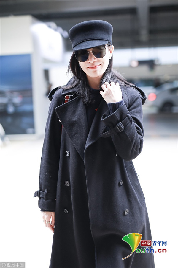 2019年2月28日,上海,佘詩曼現(xiàn)身機(jī)場。她頭戴禮帽,身穿黑色大衣走路帶風(fēng)氣場強(qiáng),單手托腮甜笑瞬間暖人心。