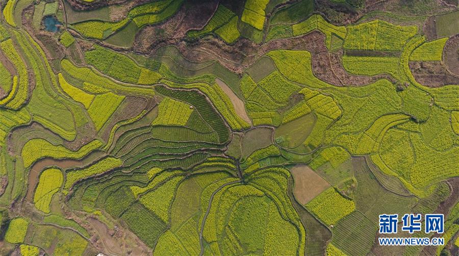 廣西融安縣東起鄉(xiāng)長(zhǎng)豐村的田園春色(3月10日無人機(jī)拍攝)。 近日,隨著氣溫持續(xù)回升,廣西融安縣境內(nèi)的油菜花開放,春意盎然。 新華社記者 黃孝邦 攝