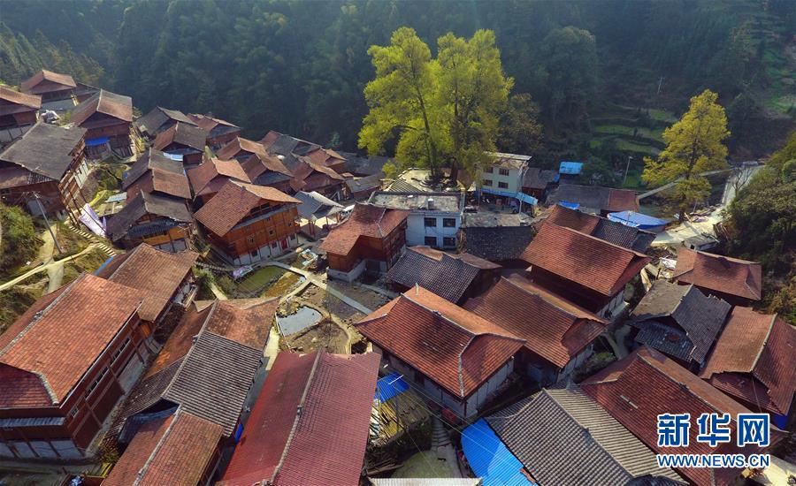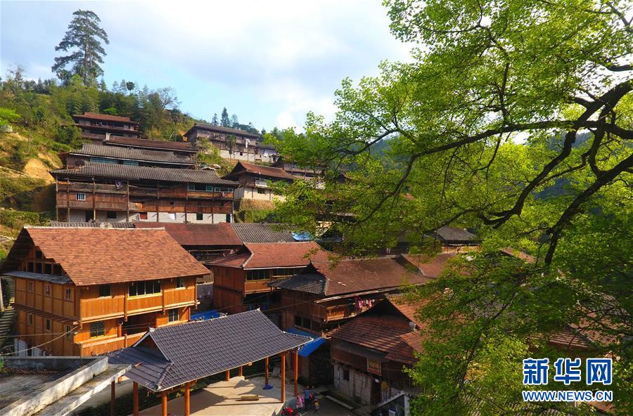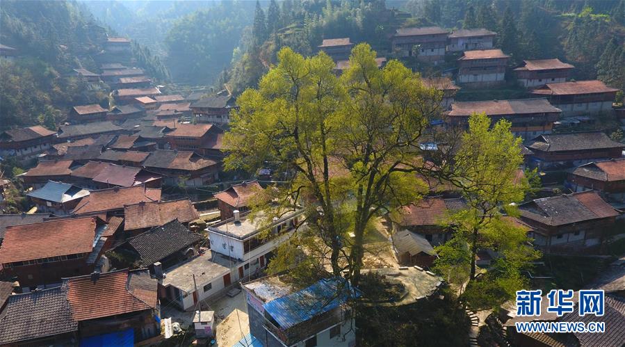 這是黔桂烏英苗寨春色(3月29日無人機(jī)拍攝)。
