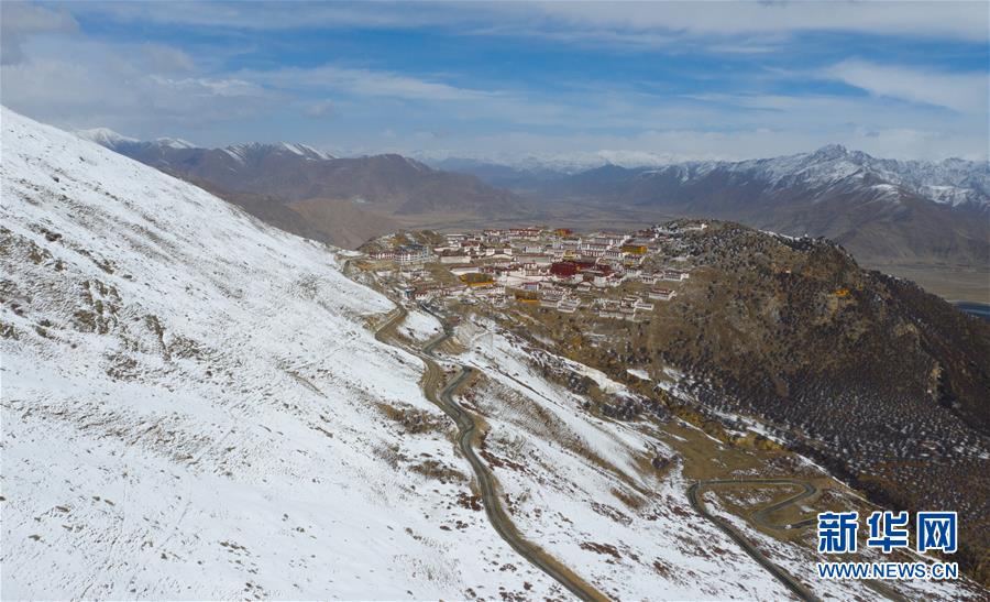 雪后的甘丹寺(4月8日無(wú)人機(jī)拍攝)。 新華社記者普布扎西攝