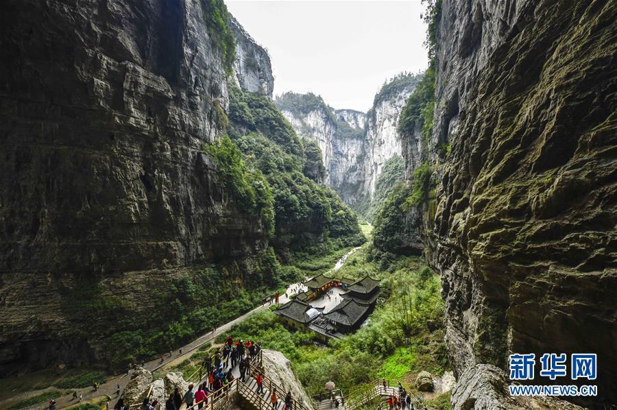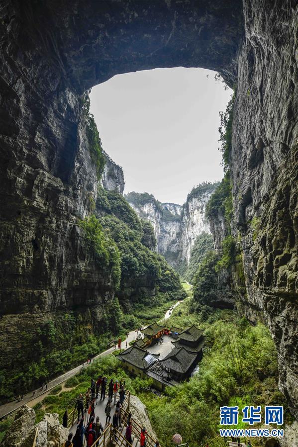 游客在天生三橋景區(qū)游覽(3月27日攝)。 隨著天氣轉暖,重慶武隆天生三橋景區(qū)風景如畫,氣勢磅礴的天生石橋和綠意盎然的山林相映成趣,吸引眾多游客前來踏春賞景。 新華社記者劉潺攝