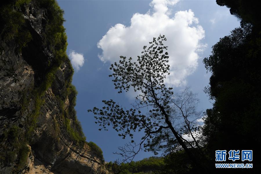 這是4月22日在地洞河天坑底部拍攝的植物。位于陜西省漢中市寧強縣的地洞河天坑,是禪家?guī)r天坑群中規(guī)模最大的一處天坑,坑內分布有石鐘乳、石筍,具有極高的地質研究價值。 新華社記者 張博文 攝