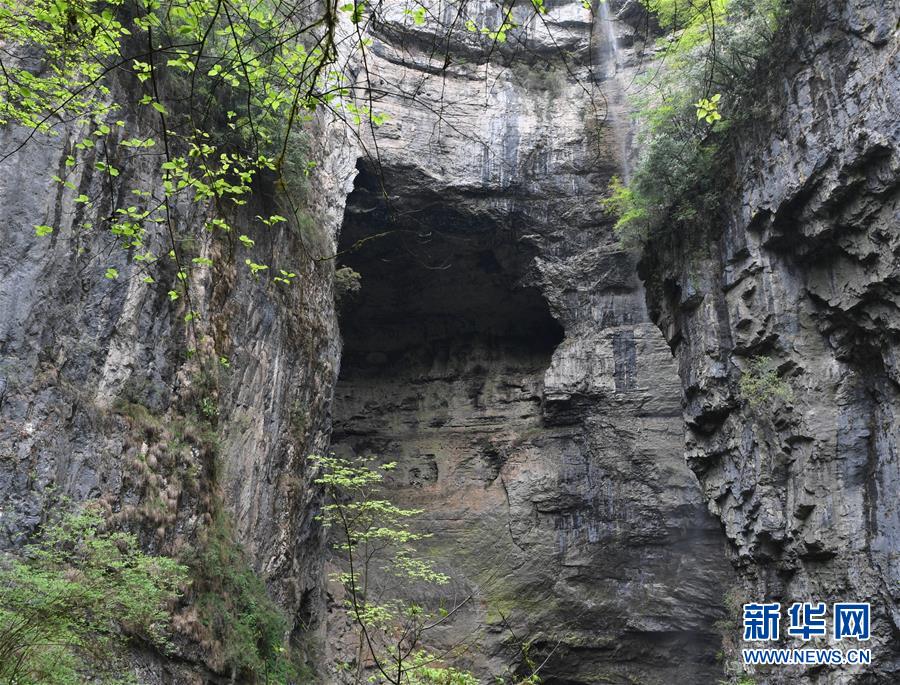 地洞河天坑的巖壁(4月22日攝)。位于陜西省漢中市寧強縣的地洞河天坑,是禪家?guī)r天坑群中規(guī)模最大的一處天坑,坑內(nèi)分布有石鐘乳、石筍,具有極高的地質(zhì)研究價值。 新華社記者 張博文 攝
