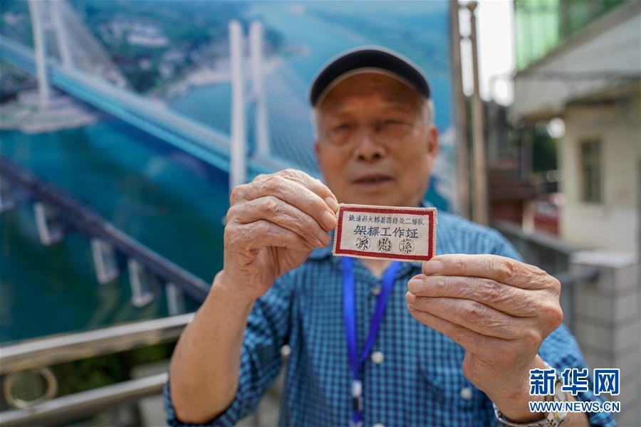 重慶白沙沱長江大橋的建設(shè)者孫貽蓀老人展示他保存的架梁工作證(4月23日攝)。 4月23日下午5點(diǎn)40分,隨著重慶白沙沱長江大橋通行的最后一列客運(yùn)列車順利通過,這座“服役”了59年的重慶首座長江大橋進(jìn)入“退役”倒計時。4月24日后,所有列車將改線經(jīng)距白沙沱長江大橋約100米的新白沙沱長江特大橋通行,新橋“接力”老橋,運(yùn)輸能力將得到大幅提升。 白沙沱長江大橋于1958年開工,1960年通過首趟列車,是繼武漢長江大橋之后的第二座長江大橋。 新華社記者 劉潺 攝
