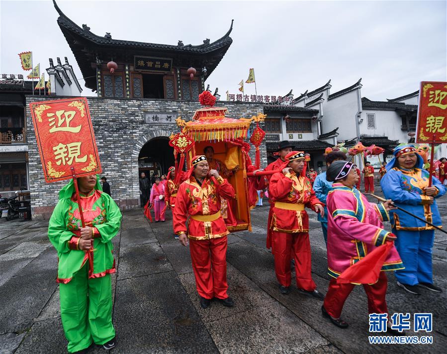 11月19日,河橋古鎮(zhèn)舉行傳統(tǒng)婚俗表演。  新華社記者 徐昱 攝