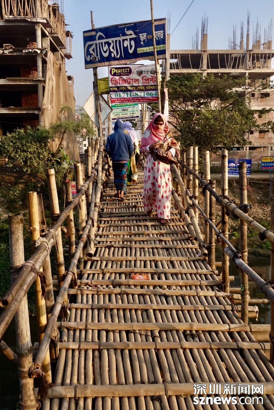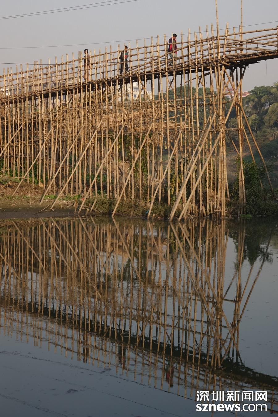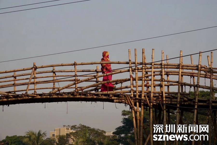 孟加拉國的大多數(shù)國土為低海拔平原,多洪水,每到雨季,各地一片汪洋,居住在地勢(shì)較高處的居民與外界和親友的聯(lián)系依賴就地取材、造價(jià)低廉的竹橋。李仁奇攝