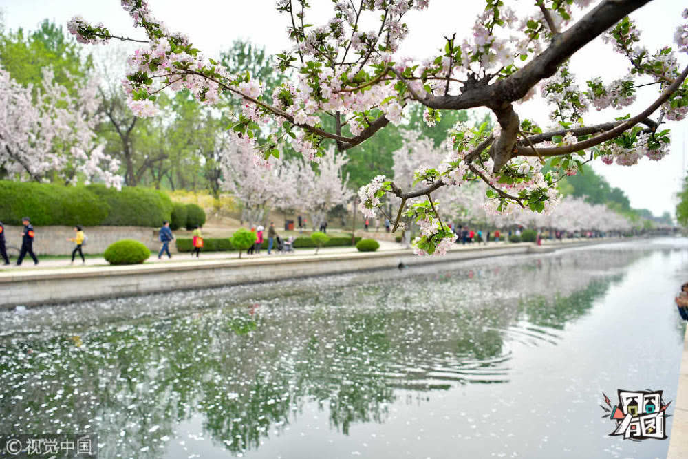 【北京海棠花溪元大都城垣遺址上的海棠林】海棠花溪,位于元大都城垣遺址公園內,是北京城區(qū)內最大的海棠林,品種諸多,久負盛名,是該公園的一張名片。每逢微風吹過,片片海棠如雪花一般飄落水面,不知不覺形成人在花中,花在水中的別樣美景。