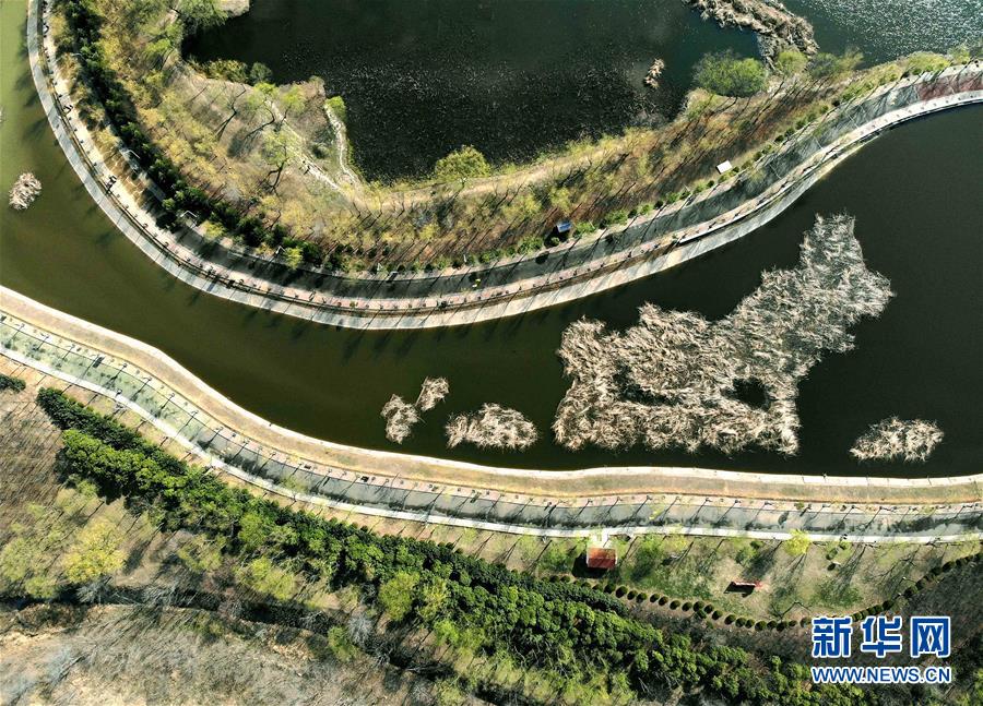 這是位于河南省平頂山市由采煤塌陷區(qū)修復(fù)改造的白鷺洲國家城市濕地公園一景(3月12日無人機(jī)拍攝)。 新華社記者 李安 攝