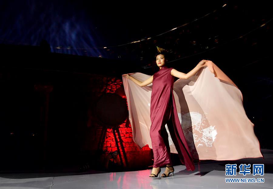 4月27日,模特在位于福建省南靖縣的土樓裕昌樓展示服飾。 當(dāng)日,土樓光語國際時尚大秀在福建省南靖縣的土樓裕昌樓內(nèi)舉行。這場融匯文化、時尚與旅游元素的大秀,通過傳統(tǒng)與時尚的有機融合,展現(xiàn)南靖土樓及文化的魅力和風(fēng)采。 新華社記者魏培全攝