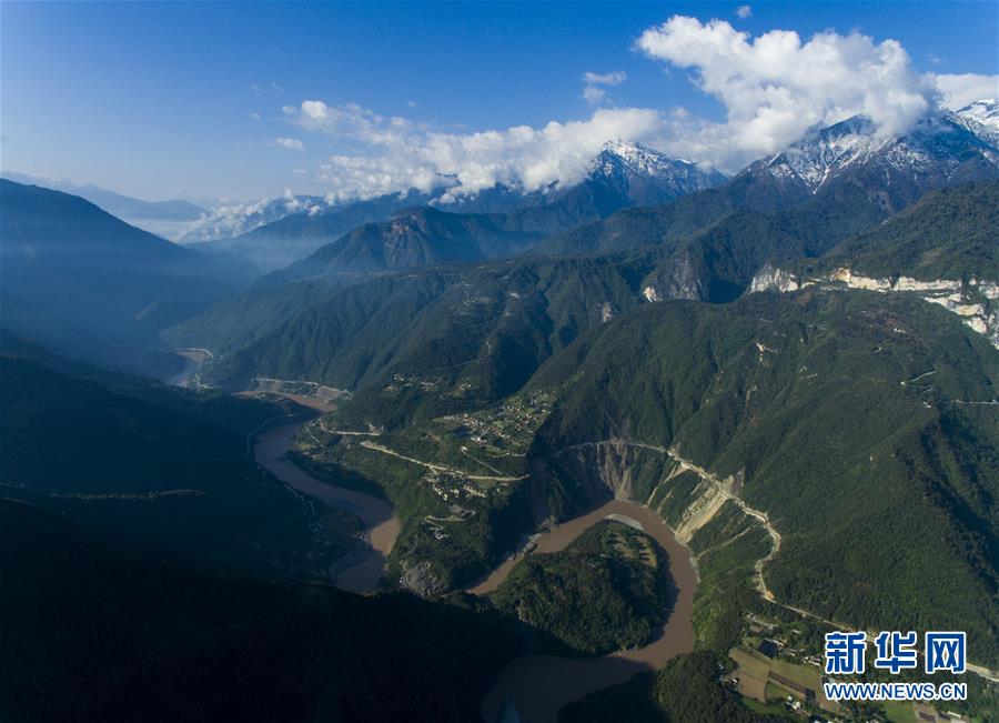 這是4月27日在云南省貢山獨龍族怒族自治縣丙中洛鎮(zhèn)拍攝的“怒江第一灣”(無人機(jī)拍攝)。 怒江自青藏高原一路奔騰向南流至云南省貢山獨龍族怒族自治縣丙中洛鎮(zhèn),高黎貢山與碧羅雪山夾江而立,江水順山勢急轉(zhuǎn)形成了一個氣勢磅礴的半圓形大灣,被稱為“怒江第一灣”。 新華社記者 江文耀 攝
