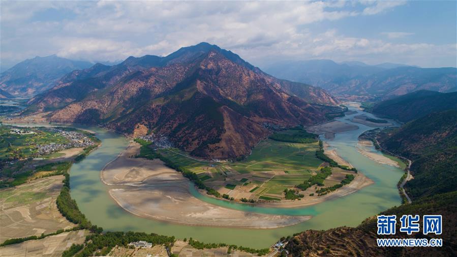這是無(wú)人機(jī)拍攝的“長(zhǎng)江第一灣”(3月17日攝)?!伴L(zhǎng)江第一灣”位于云南省麗江市玉龍納西族自治縣石鼓鎮(zhèn),萬(wàn)里長(zhǎng)江從青藏高原奔騰而下,與瀾滄江、怒江一起在橫斷山脈的高山深谷中穿行形成并流的壯麗景觀(guān)。金沙江在麗江石鼓鎮(zhèn)突然以急轉(zhuǎn)彎轉(zhuǎn)向東北,形成一個(gè)宛若“V”字形的大轉(zhuǎn)彎,得名“長(zhǎng)江第一灣”。春日里,“長(zhǎng)江第一灣”江水青碧,美景迷人。 新華社記者胡超攝