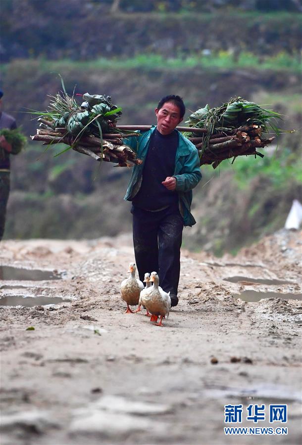 在黔桂烏英苗寨,村民勞作歸來(3月18日攝)。  新華社記者 黃孝邦 攝