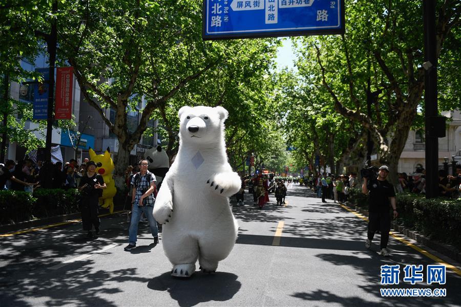 5月4日,演員裝扮成“北極熊”在巡游隊伍中表演。當日,第十五屆中國國際動漫節(jié)彩車巡游活動在浙江杭州南宋御街中北創(chuàng)意街區(qū)舉行。巡游表演隊伍約500米長,由4輛大型動漫彩車、1輛小火車及400多名演員組成。新華社記者 黃宗治 攝