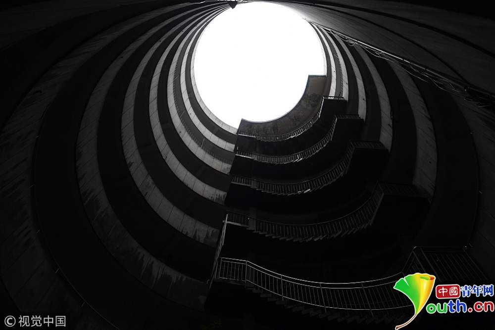 2018年12月11日,重慶紅旗河溝汽車站辦公大樓。八層的圓筒型轉(zhuǎn)轉(zhuǎn)樓,站在樓里往上望,可以看見碗口大的天空。圖片作者:尋常