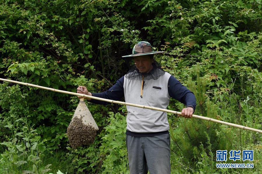5月10日,在甘肅省隴南市徽縣大河店鎮(zhèn)硬灣村,蜂農(nóng)周仲頤在收蜂。 甘肅省隴南市徽縣大河店鎮(zhèn)硬灣村位于秦巴山區(qū)深處,2017年,在當?shù)卣姆龀窒?,龍崖老巢蜜養(yǎng)殖農(nóng)民專業(yè)合作社成立,蜂農(nóng)們將傳統(tǒng)養(yǎng)蜂技藝和現(xiàn)代加工方式相結(jié)合,并通過電商等渠道打開銷路,有效帶動了當?shù)刎毨Т迕衩撠氈赂?。目前整個合作社共有蜂箱2000余個,每箱每年可帶來三四千元的收入。 新華社記者 馬寧 攝