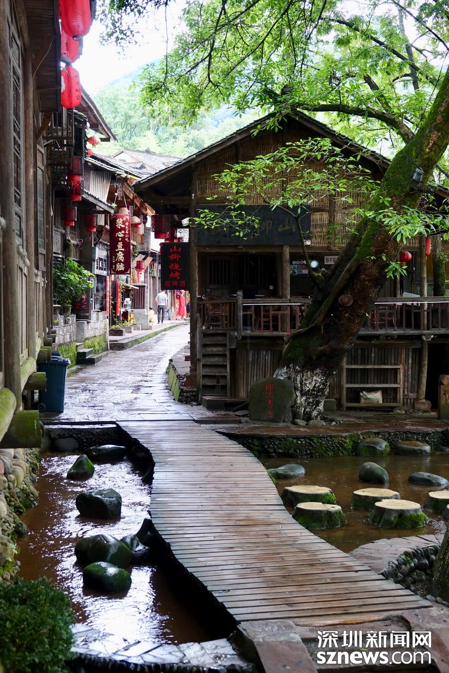 古鎮(zhèn)背靠峨眉、瓦屋仙山,楊村河、花溪河擁鎮(zhèn)而過。這里有川西風(fēng)情吊腳樓、訪古尋悠水碼頭、親水臨河古棧道、百年民居匯老街等特色景觀。李 仁奇 攝