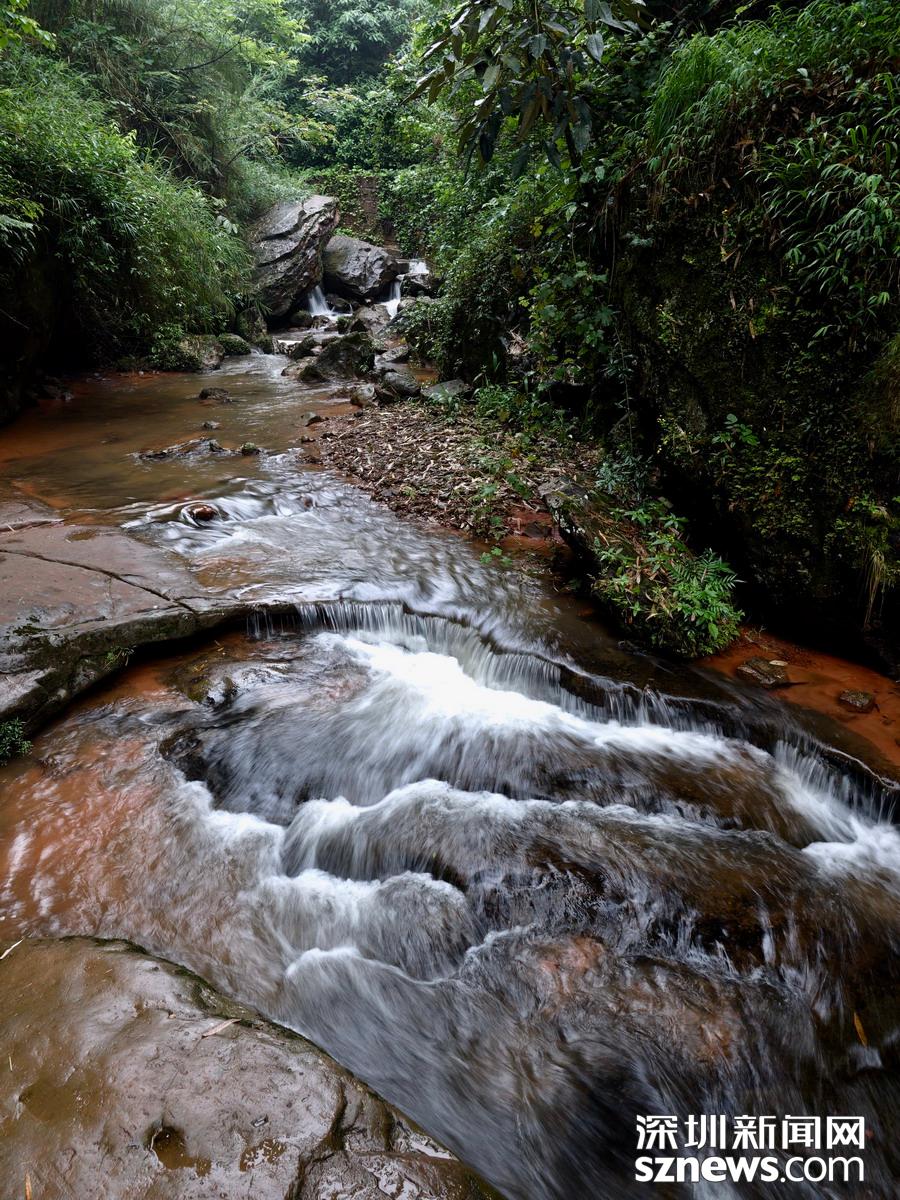 丹霞地貌與大面積古植被和2359 種動植物、珍稀瀕危動植物共存,是赤水丹霞最獨特的特征。點綴在原始森林、竹海、桫欏之間,猶如紅寶石鑲嵌在綠洲之中,是世界罕見的綠色丹霞景觀。李仁奇 攝