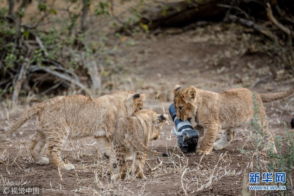 近日,非洲博茨瓦納馬沙圖野生動物保護區(qū)內(nèi)一頭獅子叼起攝影師掉落在地上的相機,之后還將相機交給小獅子們玩耍,看起來十分好奇,而攝影師非常無奈。現(xiàn)年57歲的叢林探險家Barbara Jensen Vorster在一輛越野車上為馬沙圖野生動物保護區(qū)的獅群拍照時,相機不小心掉到了地上。砰的一聲響驚動了母獅子,它向攝影師方向移動,迫使探險隊撤退。(圖片來源:視覺中國)