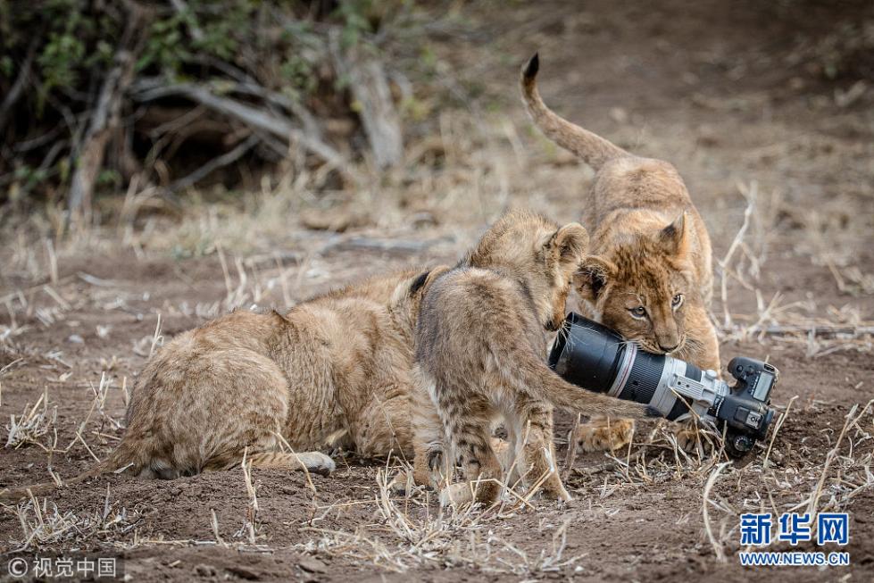 近日,非洲博茨瓦納馬沙圖野生動(dòng)物保護(hù)區(qū)內(nèi)一頭獅子叼起攝影師掉落在地上的相機(jī),之后還將相機(jī)交給小獅子們玩耍,看起來十分好奇,而攝影師非常無(wú)奈。現(xiàn)年57歲的叢林探險(xiǎn)家Barbara Jensen Vorster在一輛越野車上為馬沙圖野生動(dòng)物保護(hù)區(qū)的獅群拍照時(shí),相機(jī)不小心掉到了地上。砰的一聲響驚動(dòng)了母獅子,它向攝影師方向移動(dòng),迫使探險(xiǎn)隊(duì)撤退。(圖片來源:視覺中國(guó))