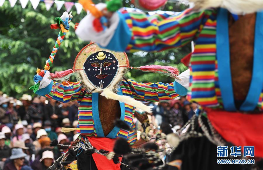 5月18日,藏戲藝人在拉薩市宗角祿康公園表演。 當(dāng)日,藏戲演出季活動在西藏拉薩啟幕。即日起至7月底的每個星期六,民間藏戲藝人將在拉薩宗角祿康公園進行公益表演。 新華社記者 普布扎西 攝